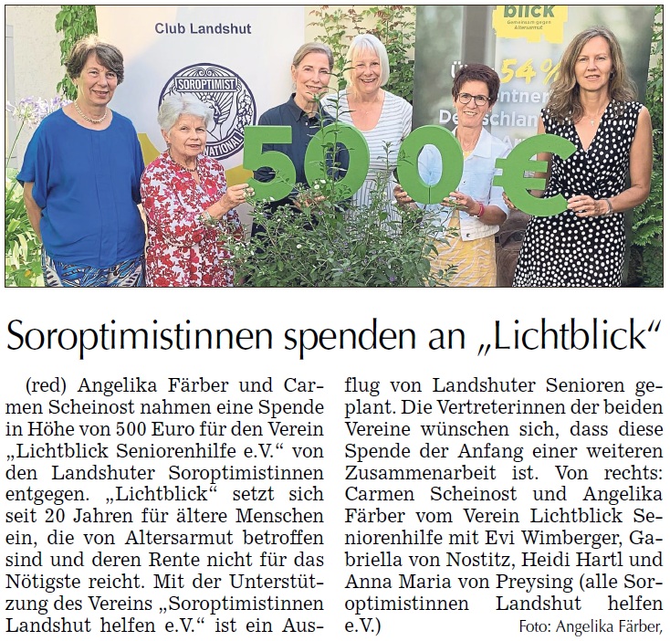 Spende der Soroptimistinnen Landshut an „Lichtblick e.V.“
