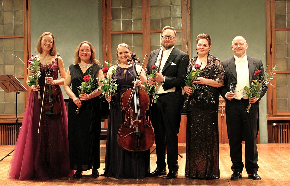 Das bewährte Künstlerensemble Heidelinde Schmid (Sopran), Peter Tilch (Bariton), Martin Seel (Querflöte), Birgit Adolf (Violine), Andrea Millett (Cello) und Christl Adolf (Klavier) begeisterte das Publikum mit Ohrwürmern aus Oper und Operette, spielte schwungvolle Walzer und Highlights aus Musicals.