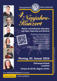 Der Soroptimist-Club Landshut lädt zum vierten Neujahrskonzert ein, zum ersten Mal findet das Konzert im Rathausprunksaal in Landshut statt.